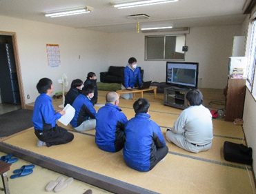 はじめにビデオ研修から行い、運転する際に気を付けなければならない点をドライブレコーダーの映像を見ながら学びました。